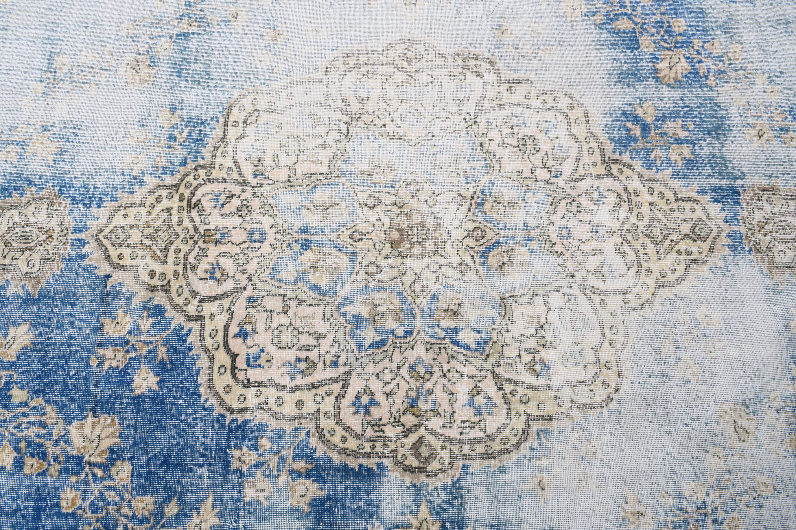 This one-of-a-kind vintage rug is hand-knotted and handwoven in Anatolia, Turkey from a unique wool blend.