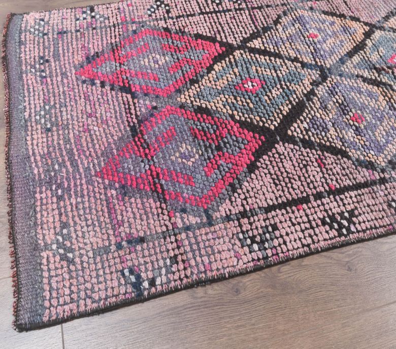 This one-of-a-kind vintage rug is hand-knotted and handwoven in Anatolia, Turkey from a unique wool blend.