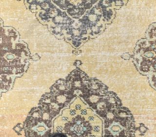 This one-of-a-kind vintage rug is hand-knotted and handwoven in Anatolia, Turkey from a unique wool blend.