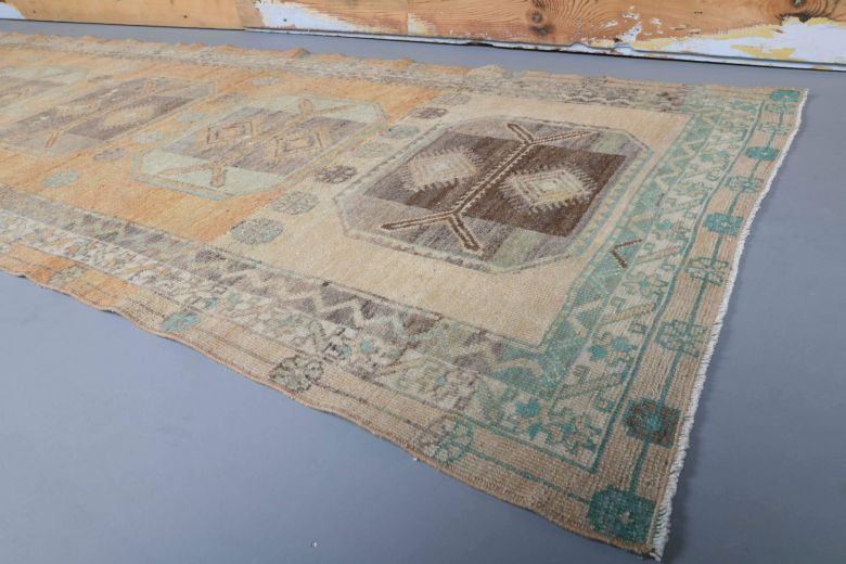 This one-of-a-kind vintage rug is hand-knotted and handwoven in Anatolia, Turkey from a unique wool blend.
