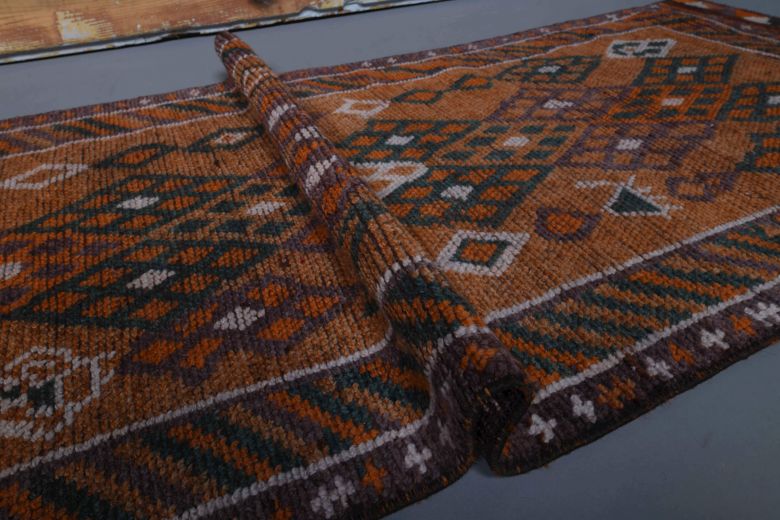 This one-of-a-kind vintage rug is hand-knotted and handwoven in Anatolia, Turkey from a unique wool blend.