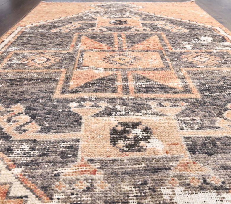 This one-of-a-kind vintage rug is hand-knotted and handwoven in Anatolia, Turkey from a unique wool blend.
