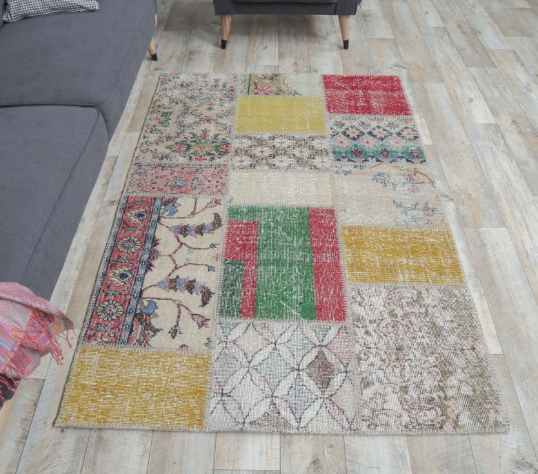 This unique rug is handmade by skilled artisans with very fine quality handspun wool which extends the durability of the rug for generations. Turkish vintage rugs each one is a piece of artwork and each tells a story through their designs and colors. They make any place in your home look amazing.