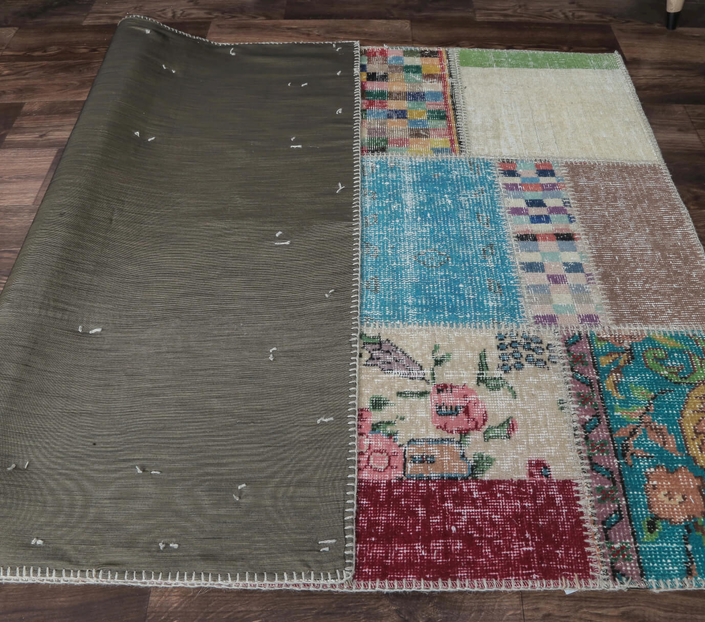 This one-of-a-kind vintage rug is hand-knotted and handwoven in Anatolia, Turkey from a unique wool blend.
