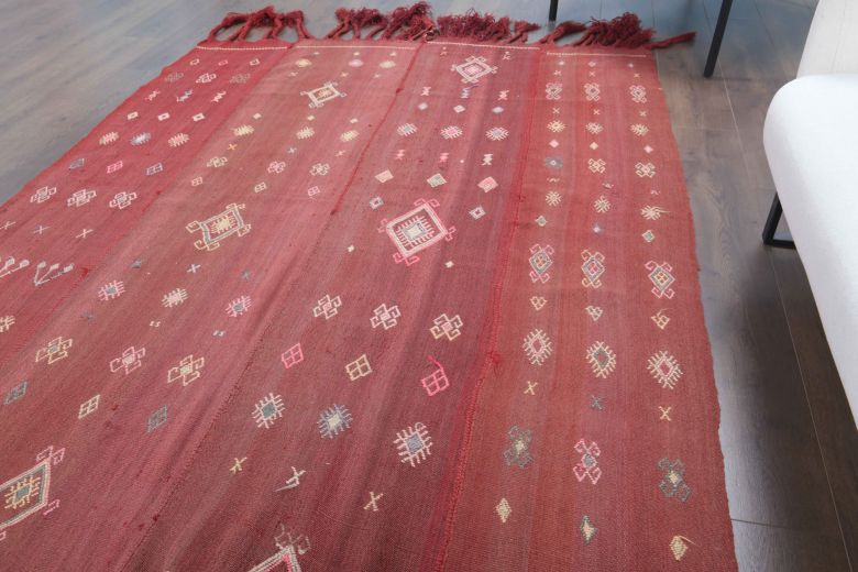 This unique rug is handmade by skilled artisans with very fine quality handspun wool which extends the durability of the rug for generations. Turkish vintage rugs each one is a piece of artwork and each tells a story through their designs and colors. They make any place in your home look amazing.