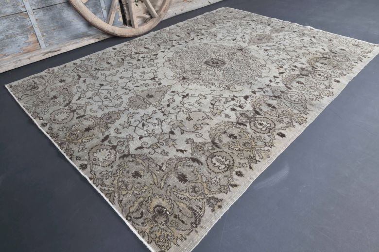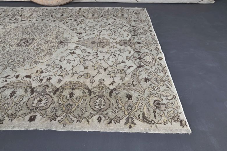 This one-of-a-kind vintage rug is hand-knotted and handwoven in Anatolia, Turkey from a unique wool blend.