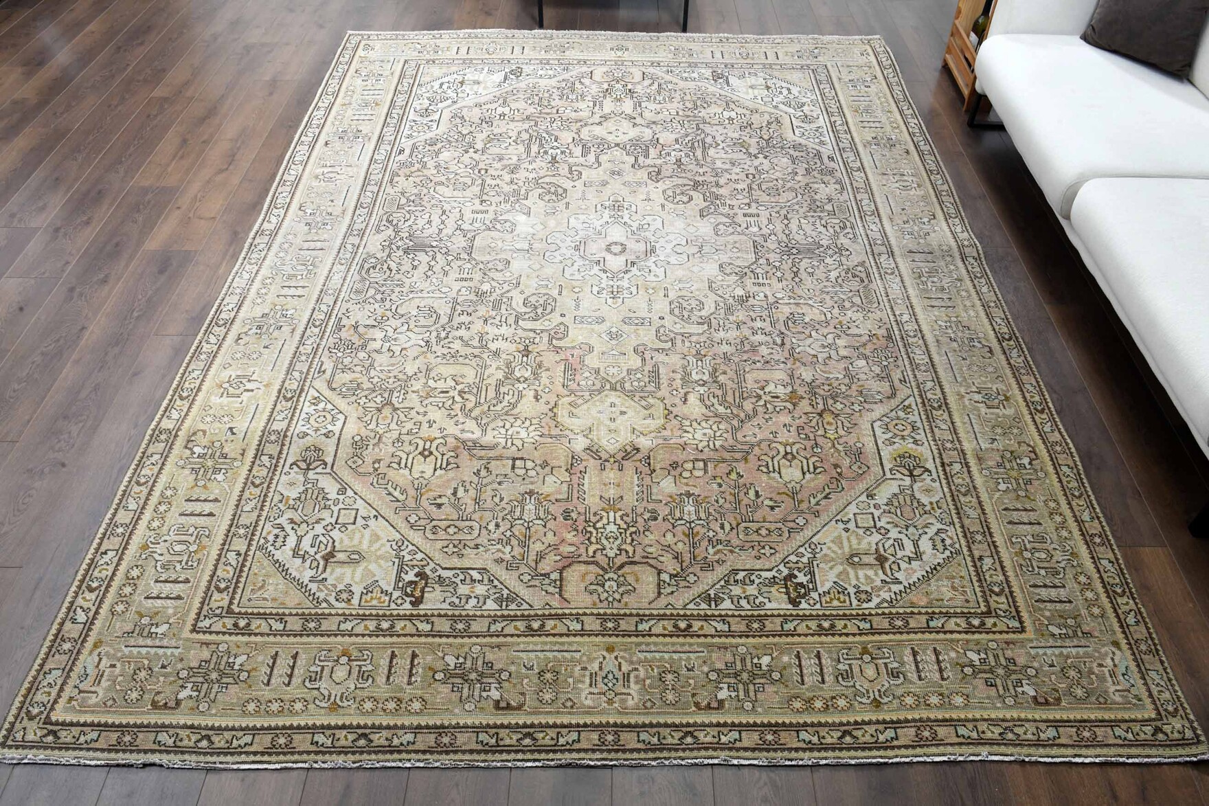 This one-of-a-kind vintage rug is hand-knotted and handwoven in Persian Region from a unique wool blend.