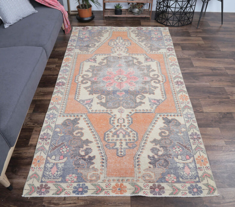 This unique rug is handmade by skilled artisans with very fine quality handspun wool which extends the durability of the rug for generations. Turkish vintage rugs each one is a piece of artwork and each tells a story through their designs and colors. They make any place in your home look amazing.