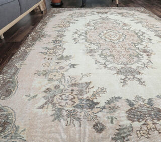 This one-of-a-kind vintage rug is hand-knotted and handwoven in Anatolia, Turkey from a unique wool blend.