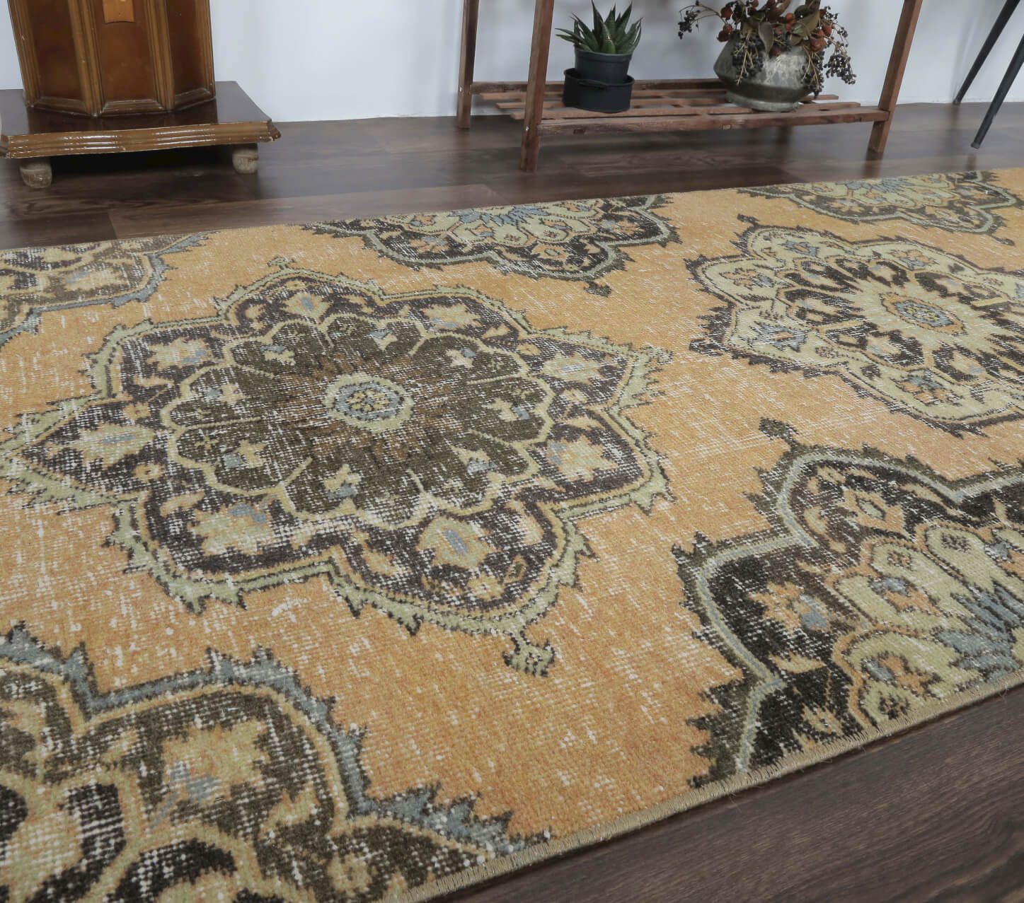 This one-of-a-kind vintage rug is hand-knotted and handwoven in Anatolia, Turkey from a unique wool blend.