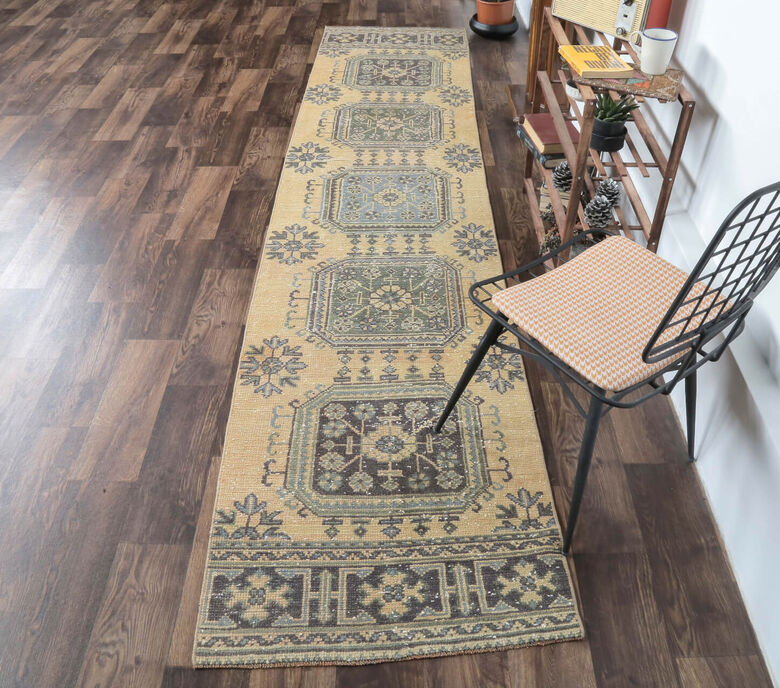 This unique rug is handmade by skilled artisans with very fine quality handspun wool which extends the durability of the rug for generations. Turkish vintage rugs each one is a piece of artwork and each tells a story through their designs and colors. They make any place in your home look amazing.