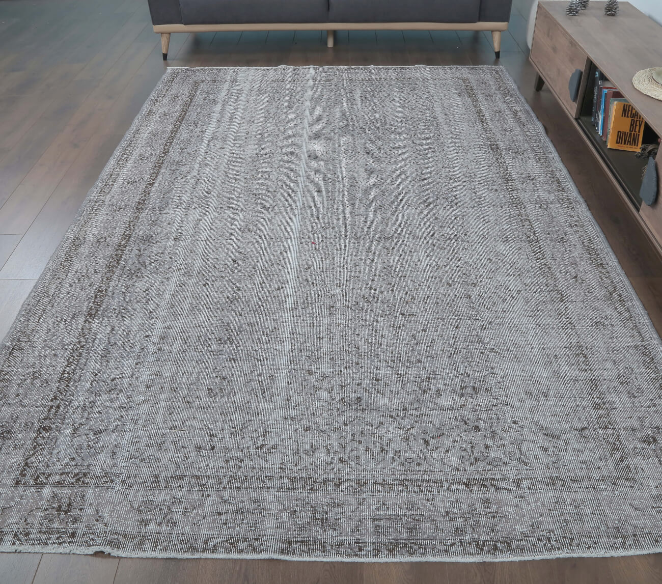 This one-of-a-kind vintage rug is hand-knotted and handwoven in Anatolia, Turkey from a unique wool blend.