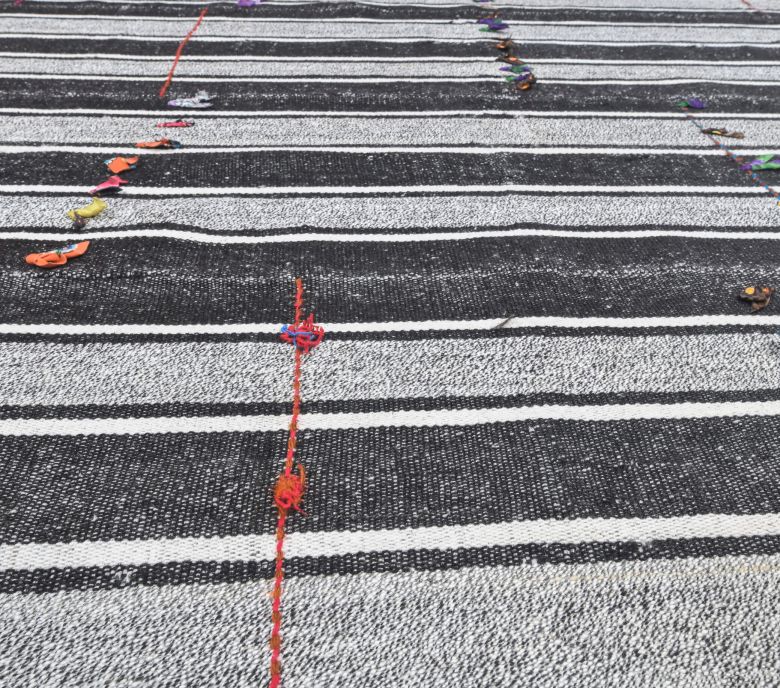 This one-of-a-kind vintage rug is hand-knotted and handwoven in Anatolia, Turkey from a unique wool blend.