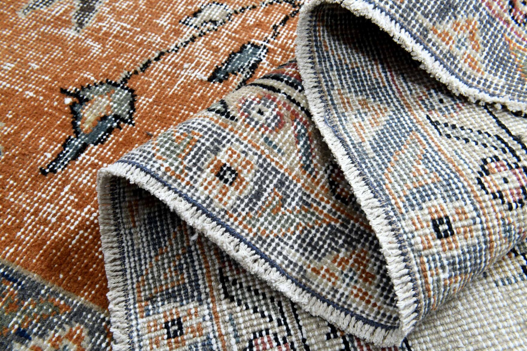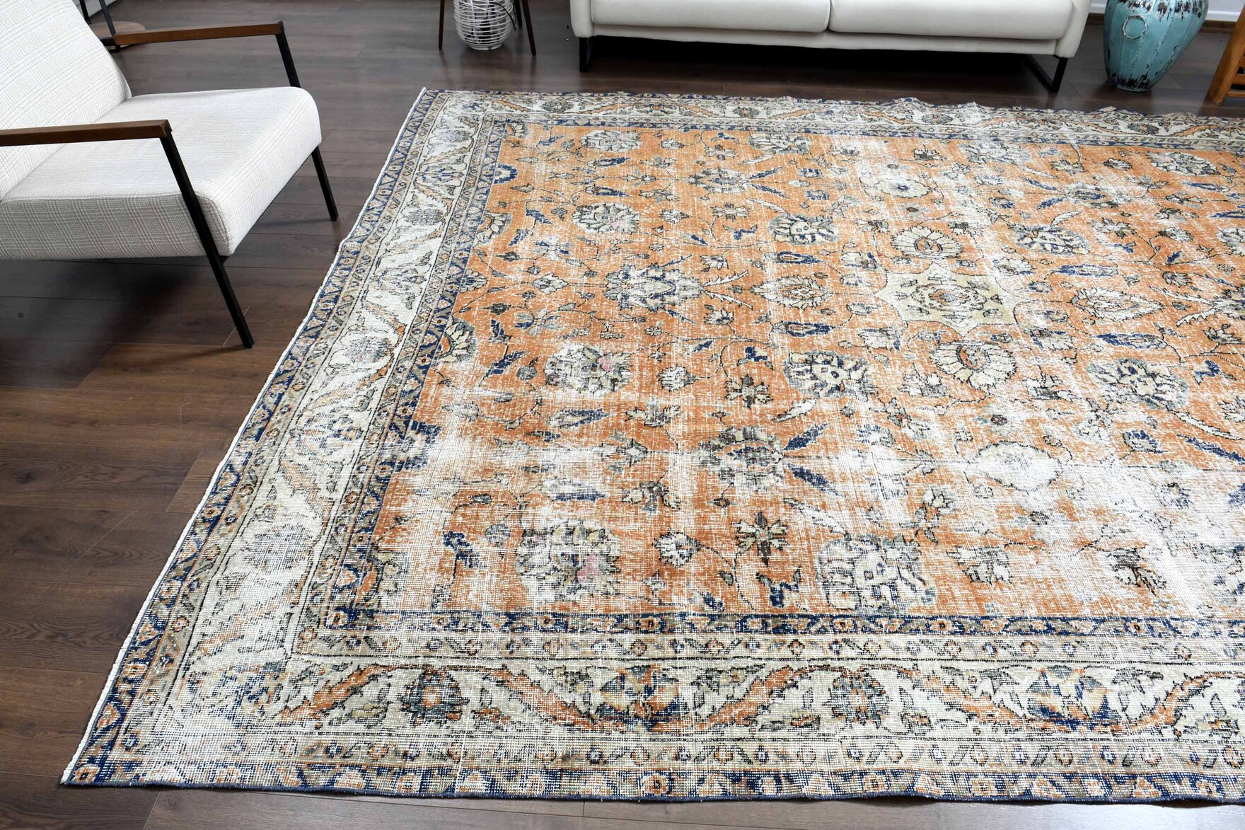The natural inconsistencies and age-related wear are inherent in these unique, handmade vintage rugs. Scroll down for more product details.