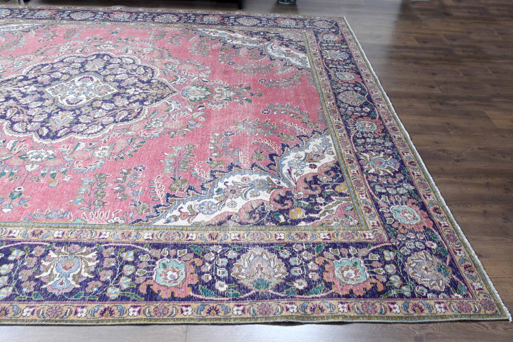 The natural inconsistencies and age-related wear are inherent in these unique, handmade vintage rugs. Scroll down for more product details.