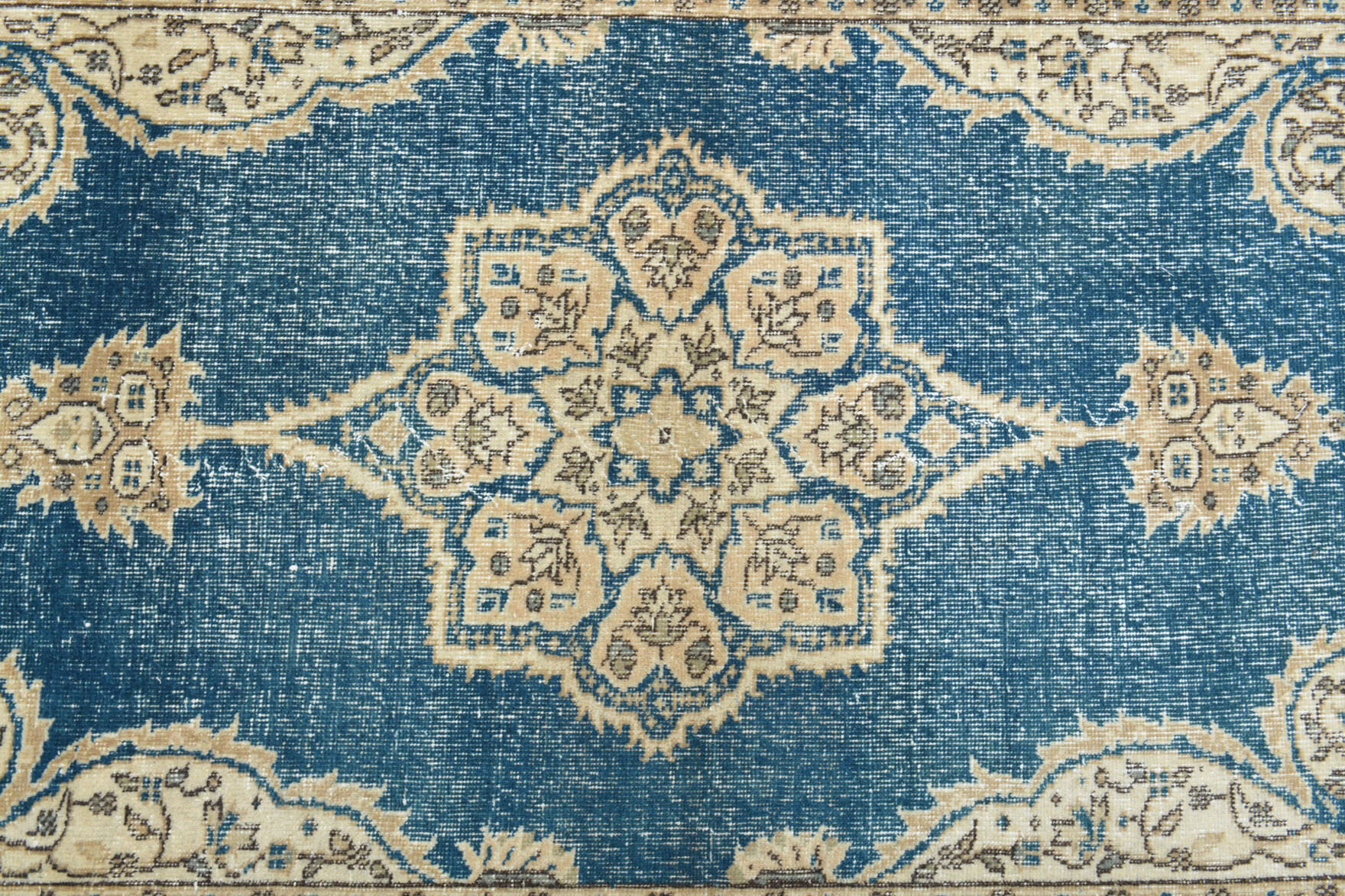 This one-of-a-kind vintage rug is hand-knotted and handwoven in Anatolia, Turkey from a unique wool blend.