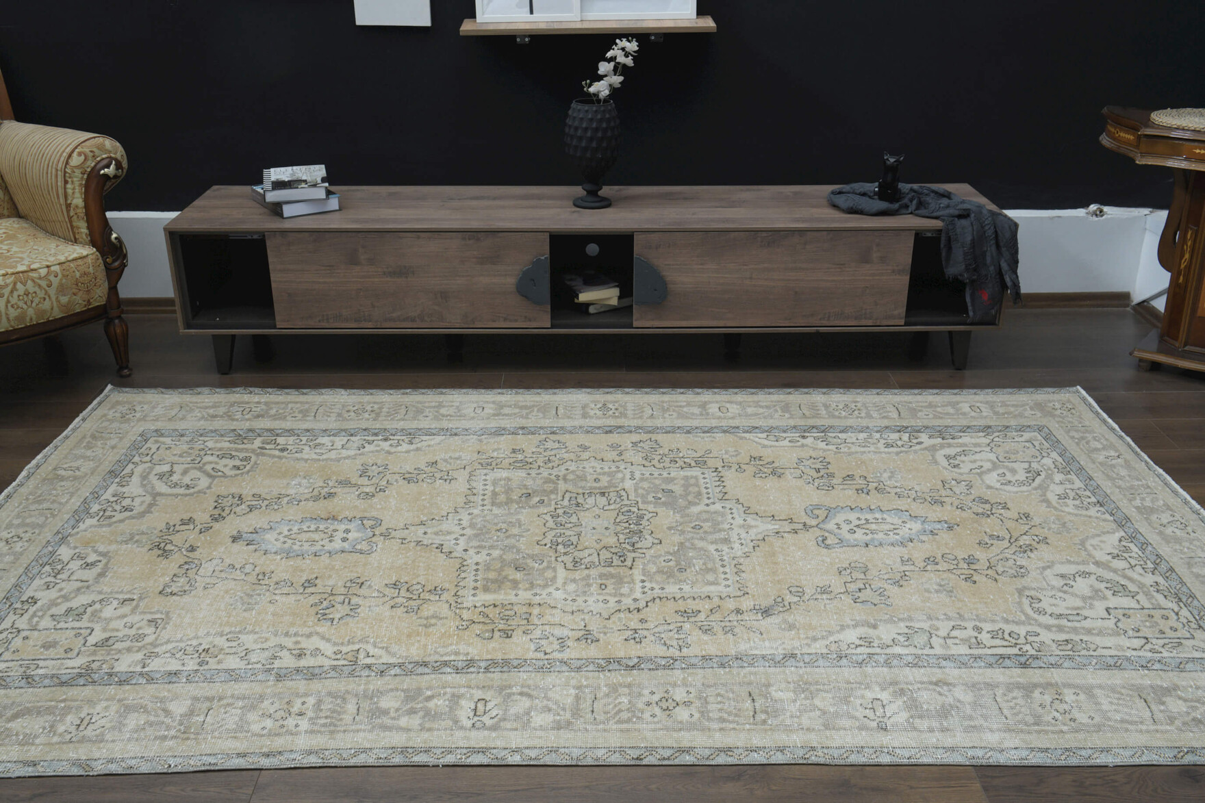 This one-of-a-kind vintage rug is hand-knotted and handwoven in Anatolia, Turkey from a unique wool blend.