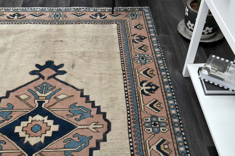 This unique rug is handmade by skilled artisans with very fine quality handspun wool which extends the durability of the rug for generations. Turkish vintage rugs each one is a piece of artwork and each tells a story through their designs and colors. They make any place in your home look amazing.
