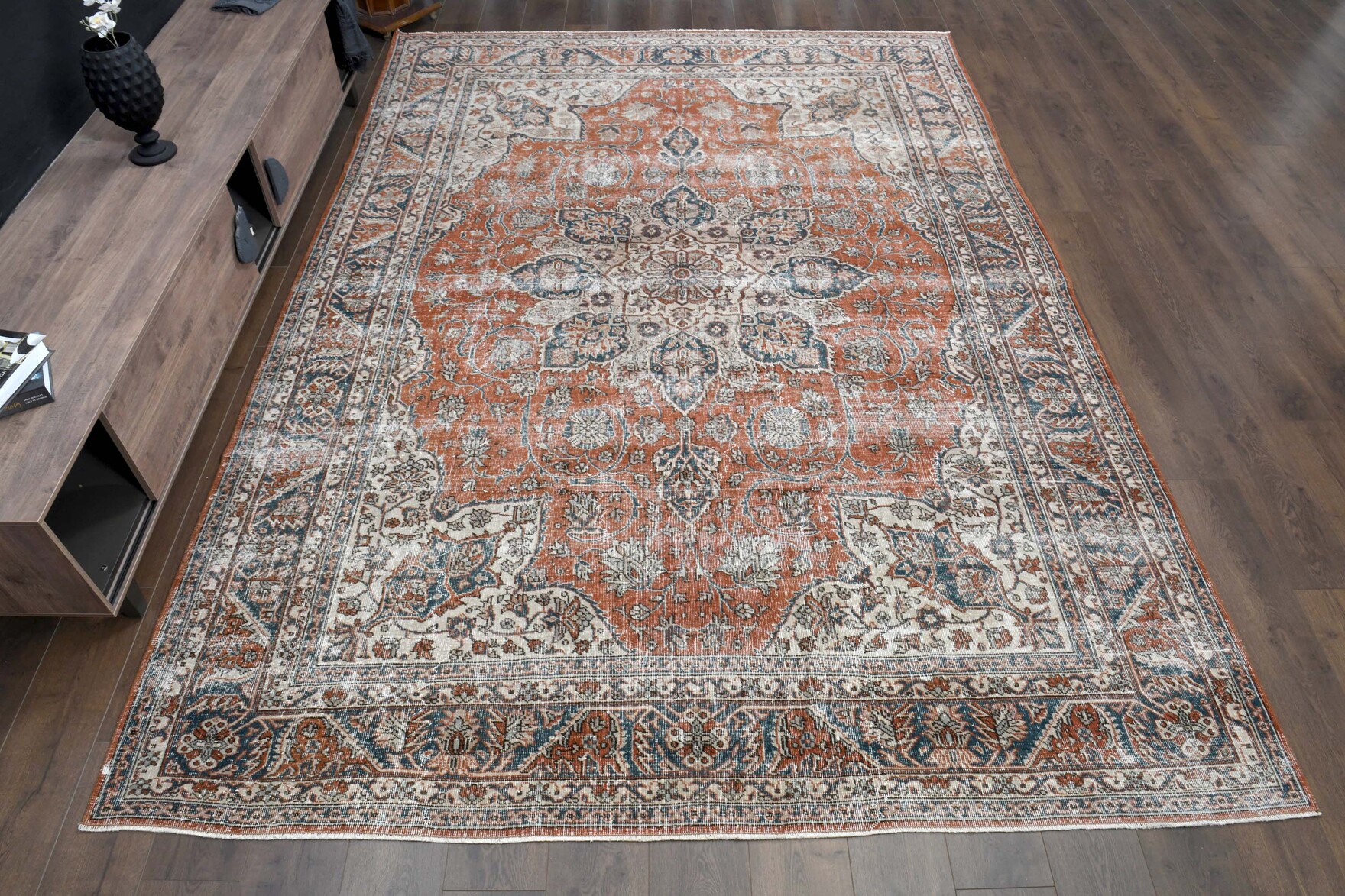This unique rug is handmade by skilled artisans with very fine quality handspun wool which extends the durability of the rug for generations. Turkish vintage rugs each one is a piece of artwork and each tells a story through their designs and colors. They make any place in your home look amazing.