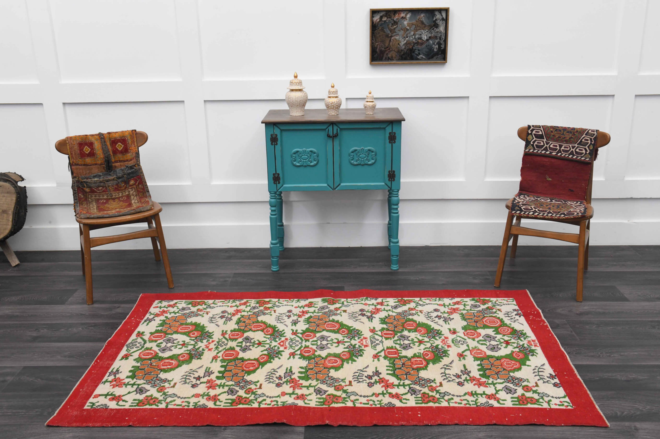 The natural inconsistencies and age-related wear are inherent in these unique, handmade vintage rugs. Scroll down for more product details.