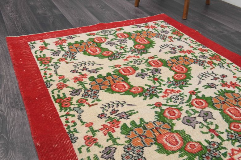 This one-of-a-kind vintage rug is hand-knotted and handwoven in Anatolia, Turkey from a unique wool blend.