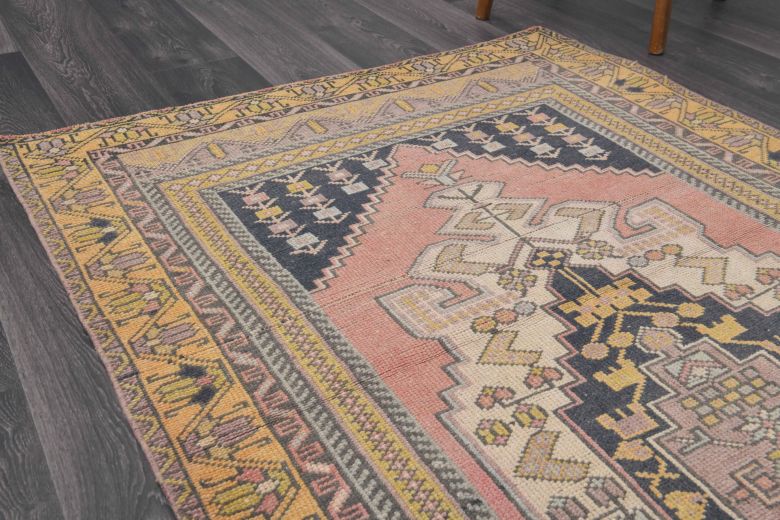 This one-of-a-kind vintage rug is hand-knotted and handwoven in Anatolia, Turkey from a unique wool blend.