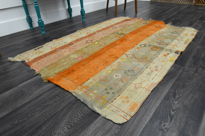 This unique rug is handmade by skilled artisans with very fine quality handspun wool which extends the durability of the rug for generations. Turkish vintage rugs each one is a piece of artwork and each tells a story through their designs and colors. They make any place in your home look amazing.