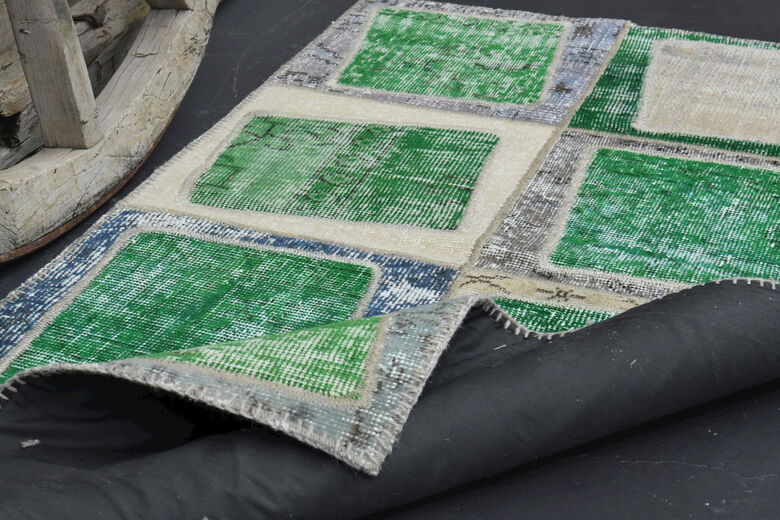 Boxes - Greeen Patchwork Handmade Vintage Rug