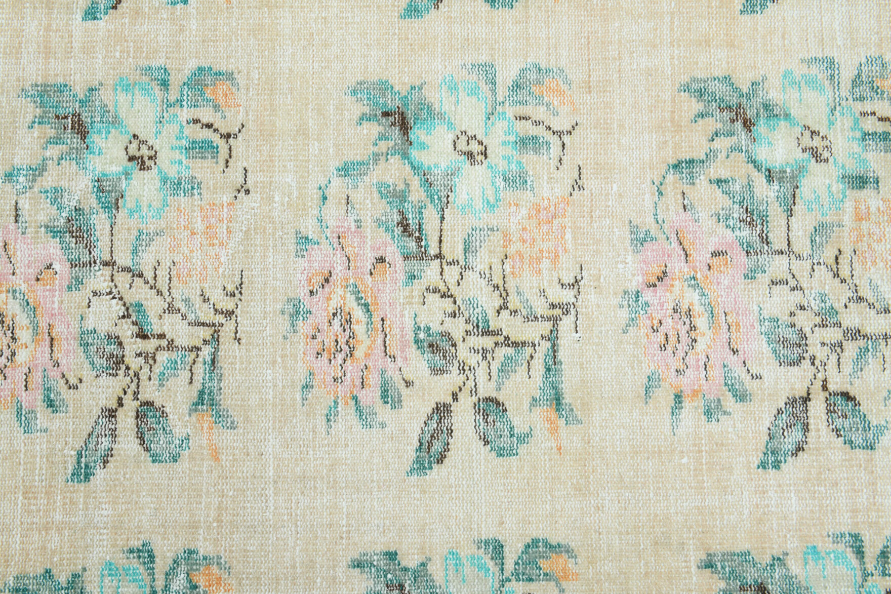 This one-of-a-kind vintage rug is hand-knotted and handwoven in Anatolia, Turkey from a unique wool blend.