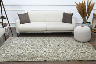 This one-of-a-kind vintage rug is hand-knotted and handwoven in Anatolia, Turkey from a unique wool blend.