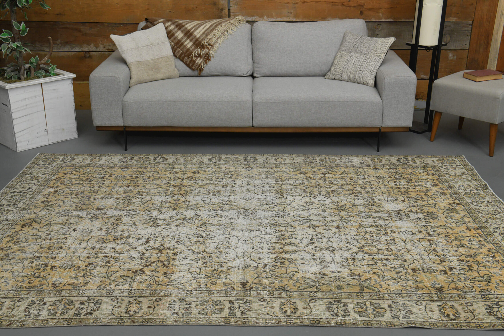 This one-of-a-kind vintage rug is hand-knotted and handwoven in Anatolia, Turkey from a unique wool blend.