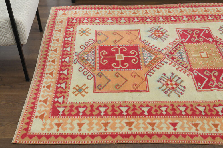 This unique rug is handmade by skilled artisans with very fine quality handspun wool which extends the durability of the rug for generations. Turkish vintage rugs each one is a piece of artwork and each tells a story through their designs and colors. They make any place in your home look amazing.