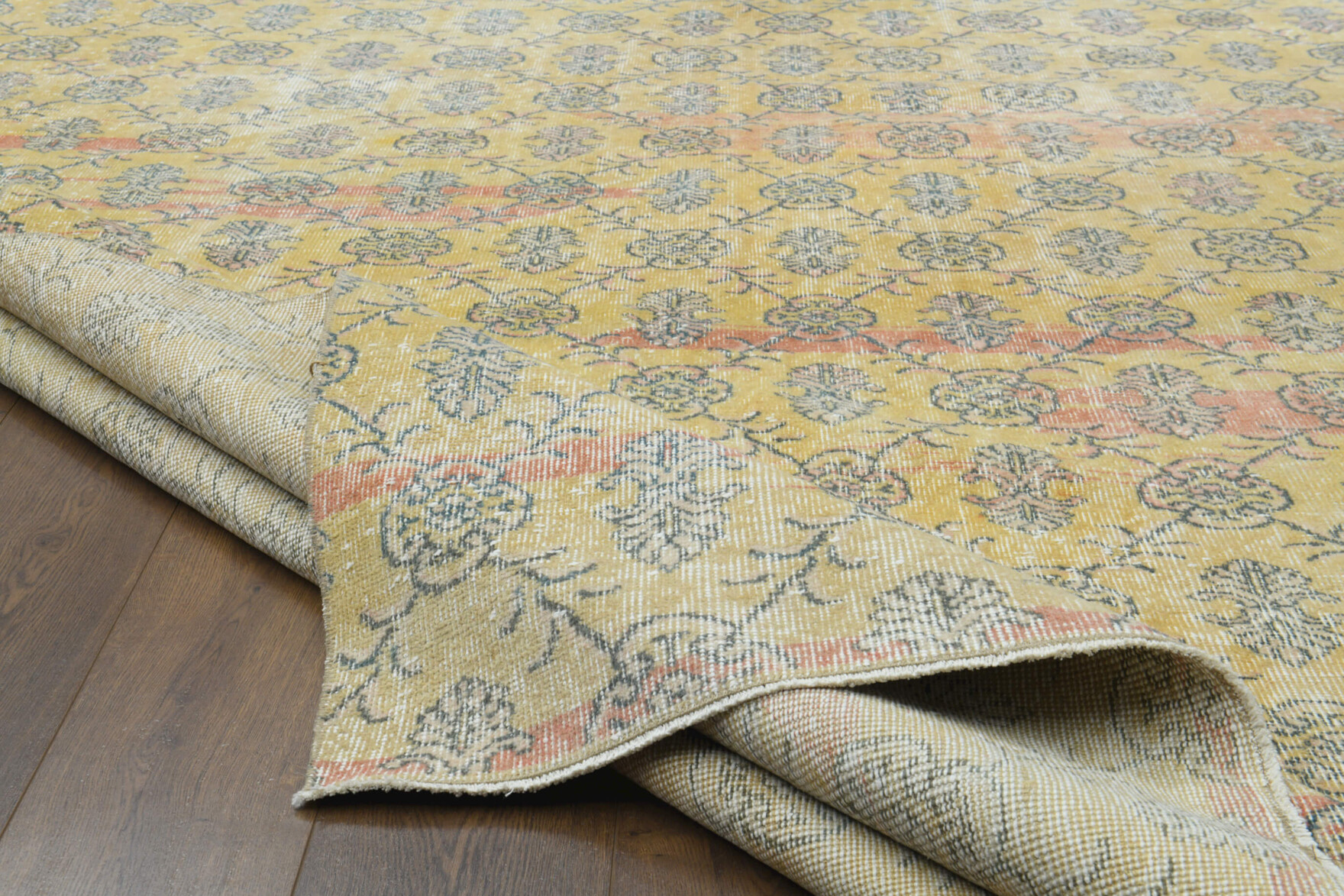 This one-of-a-kind vintage rug is hand-knotted and handwoven in Anatolia, Turkey from a unique wool blend.