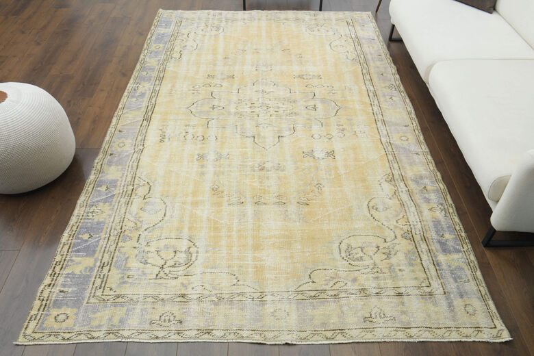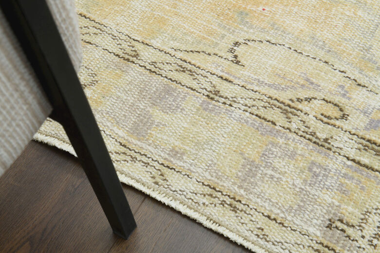 This one-of-a-kind vintage rug is hand-knotted and handwoven in Anatolia, Turkey from a unique wool blend.