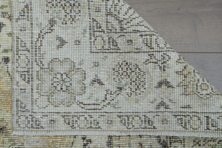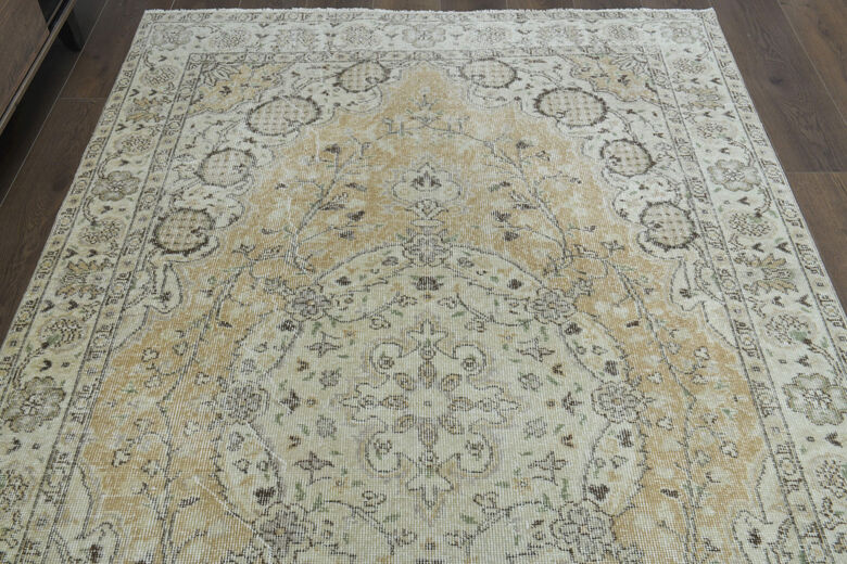 This one-of-a-kind vintage rug is hand-knotted and handwoven in Anatolia, Turkey from a unique wool blend.