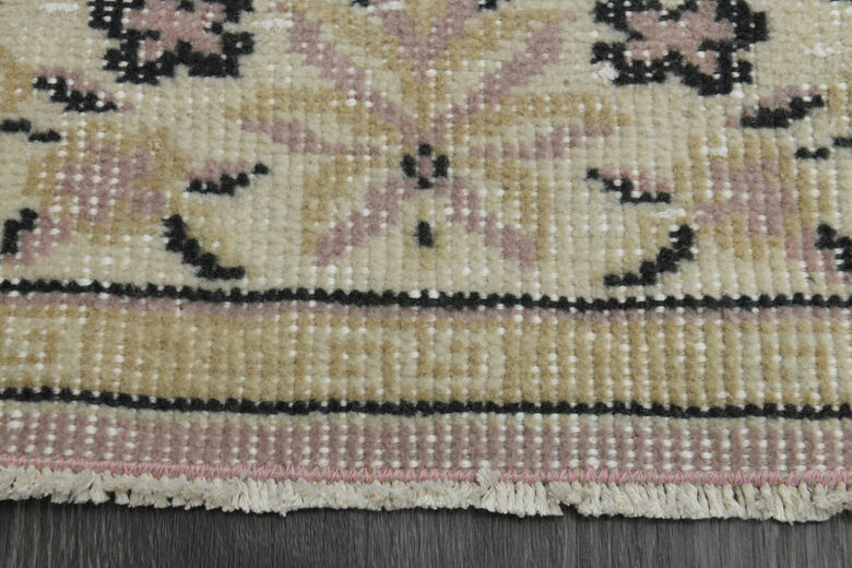 This one-of-a-kind vintage Turkish rug is hand-knotted and handwoven in Anatolia, Turkey from a unique wool blend.