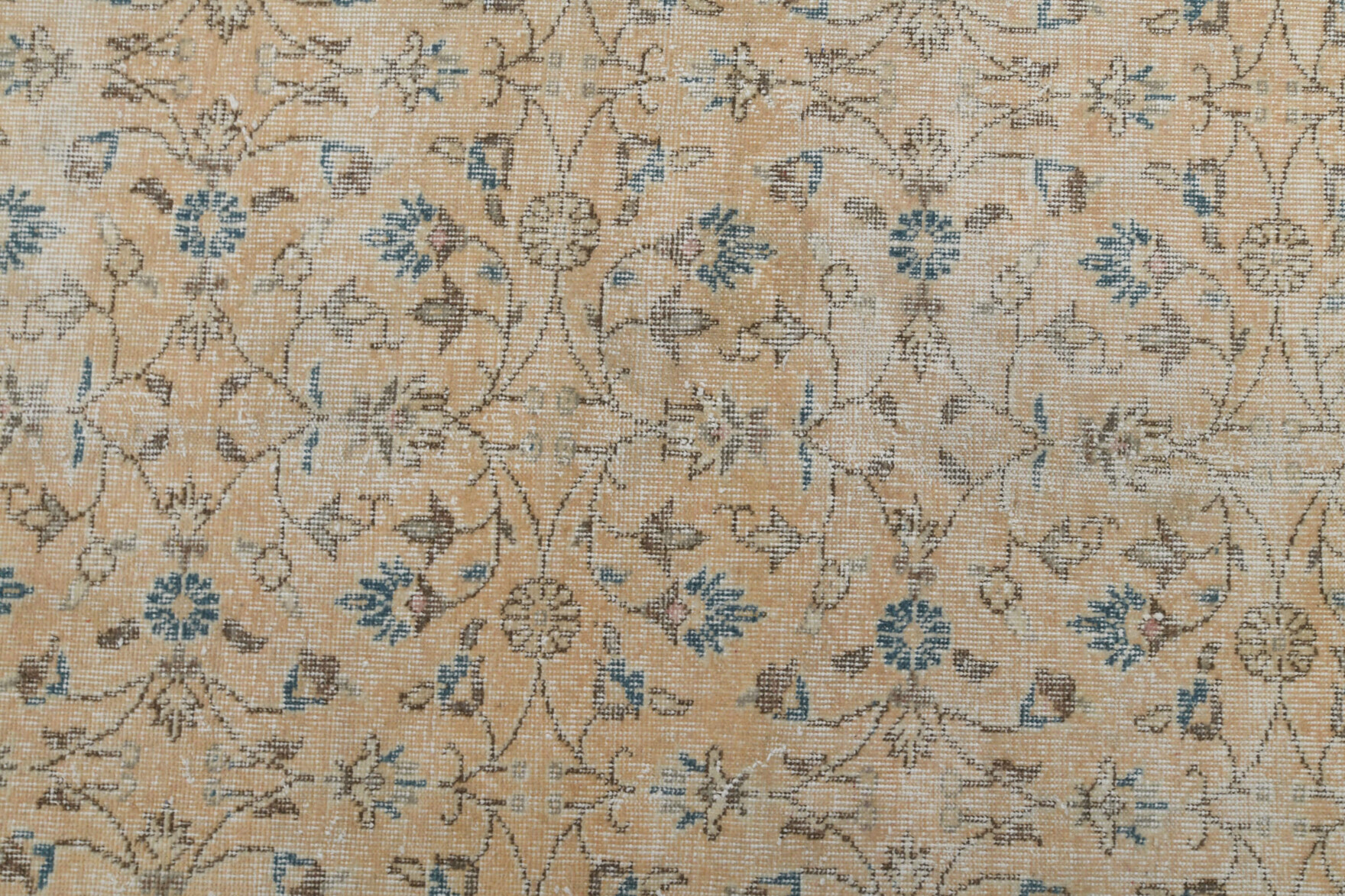 This one-of-a-kind vintage beige rug is hand-knotted and handwoven in Anatolia, Turkey from a unique wool blend.