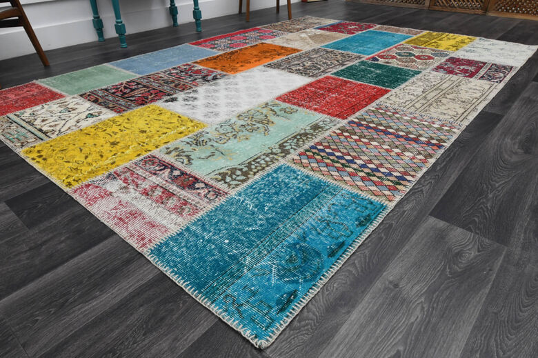 This unique rug is handmade by skilled artisans with very fine quality handspun wool which extends the durability of the rug for generations. Turkish vintage rugs each one is a piece of artwork and each tells a story through their designs and colors. They make any place in your home look amazing.