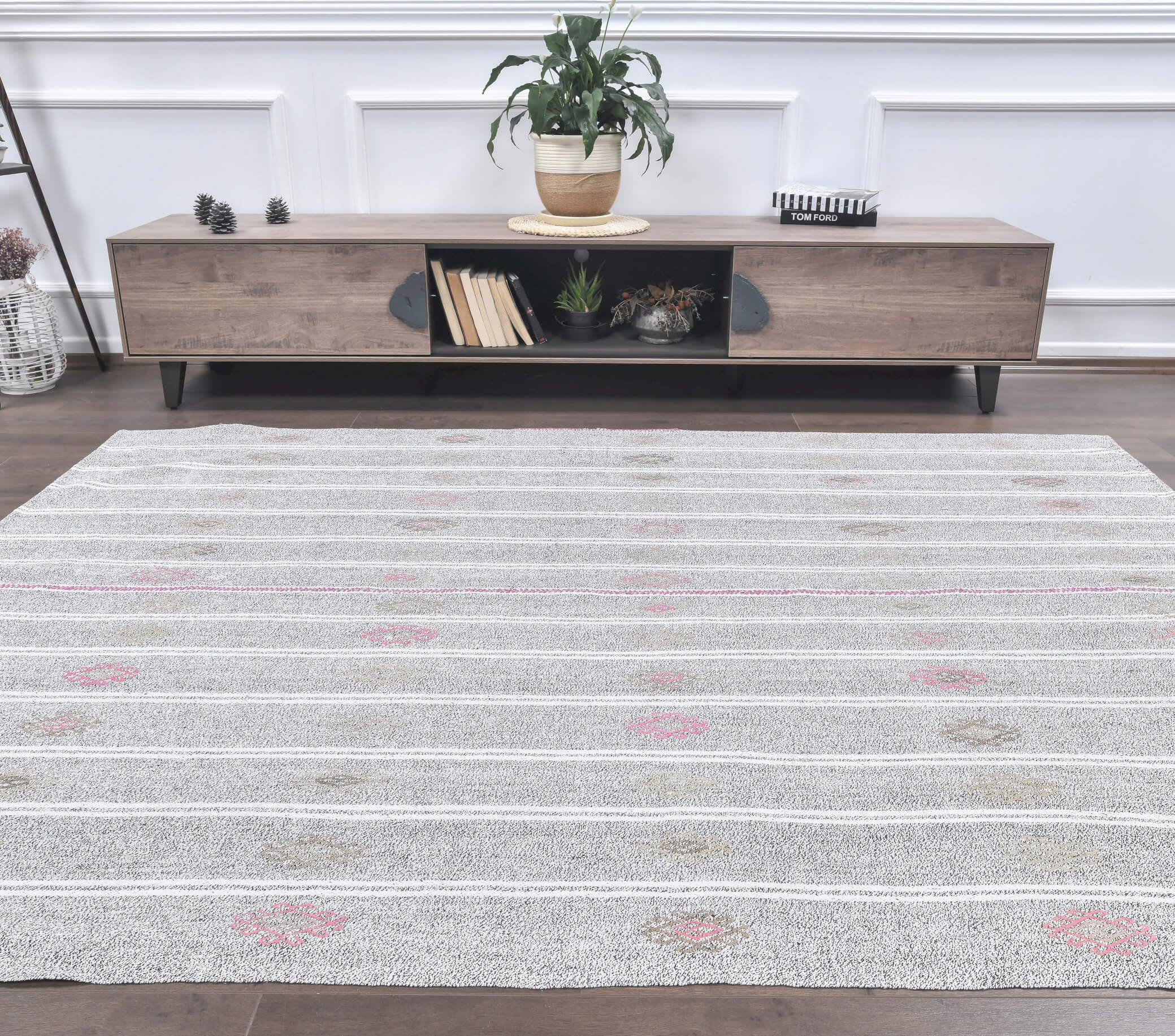 This one-of-a-kind vintage rug is hand-knotted and handwoven in Anatolia, Turkey from a unique wool blend.