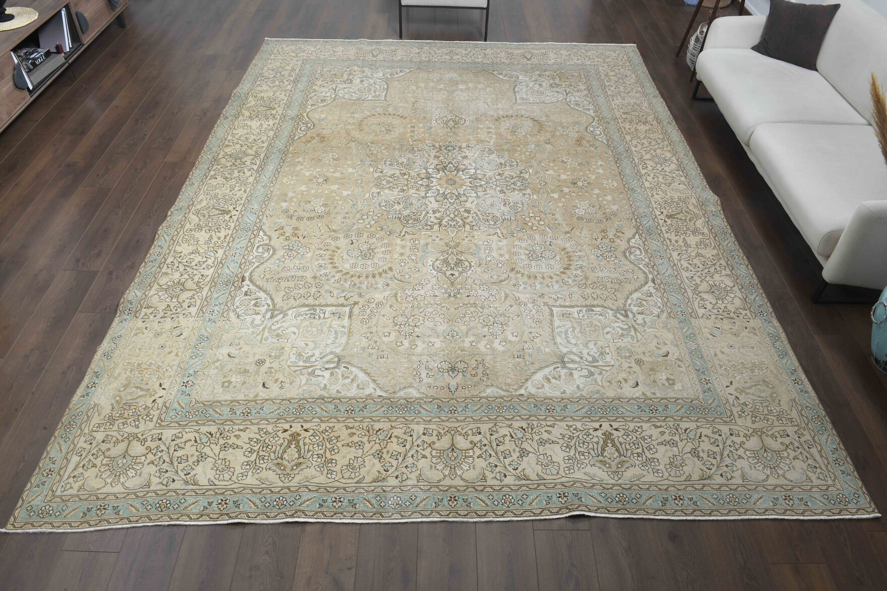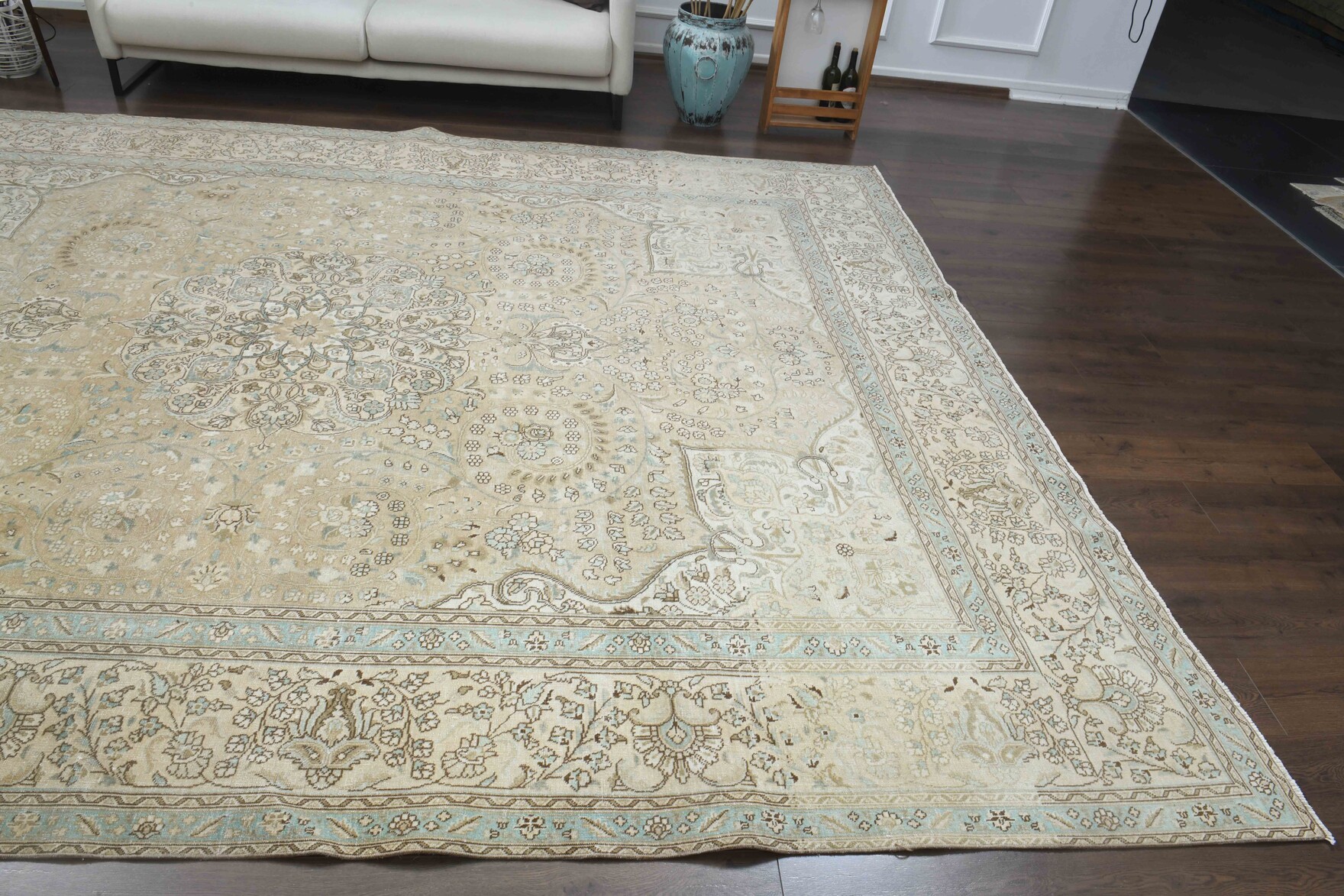 This one-of-a-kind vintage rug is hand-knotted and handwoven in Persian from a unique wool blend.