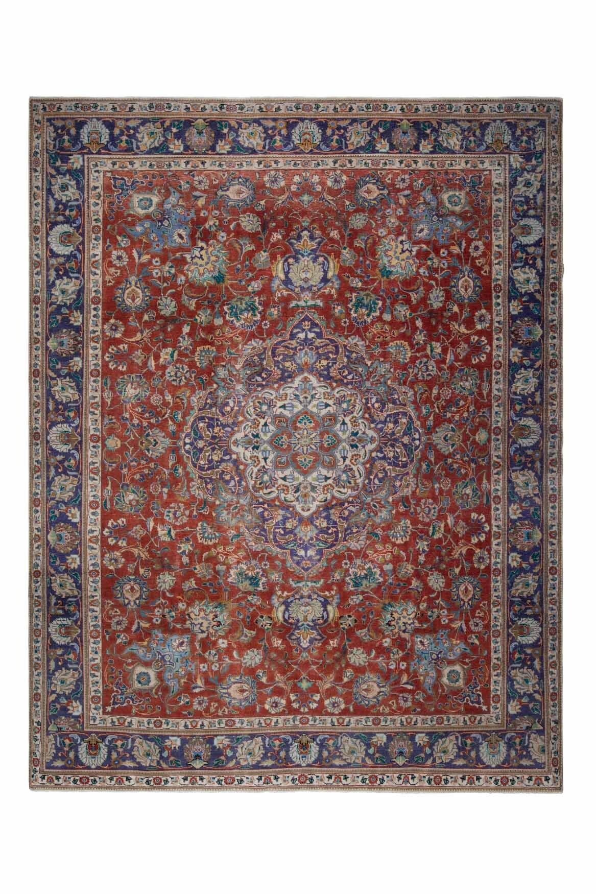 This one-of-a-kind vintage rug is hand-knotted and handwoven in Persian Region from a unique wool blend.