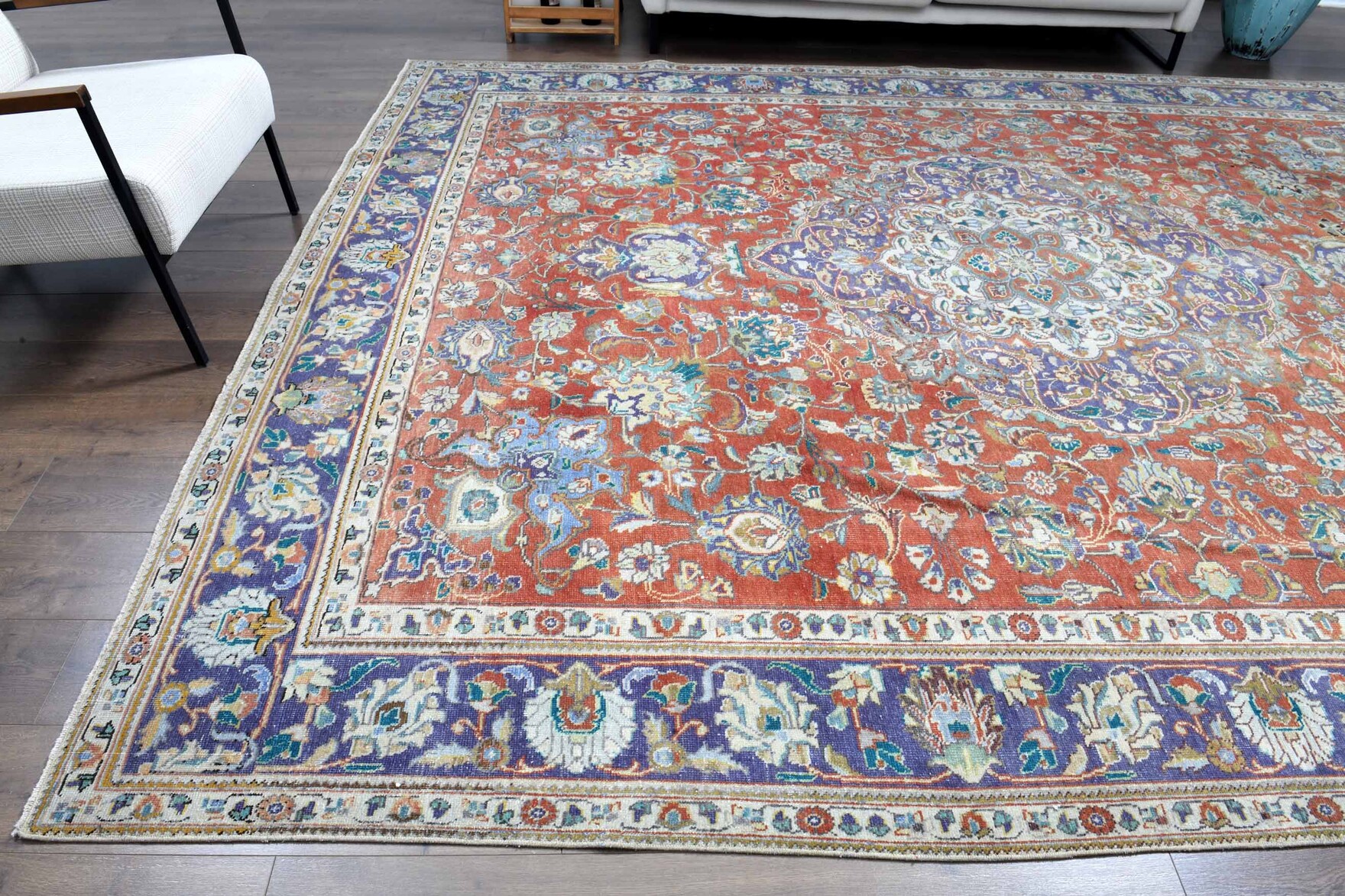 The natural inconsistencies and age-related wear are inherent in these unique, handmade vintage rugs. Scroll down for more product details.