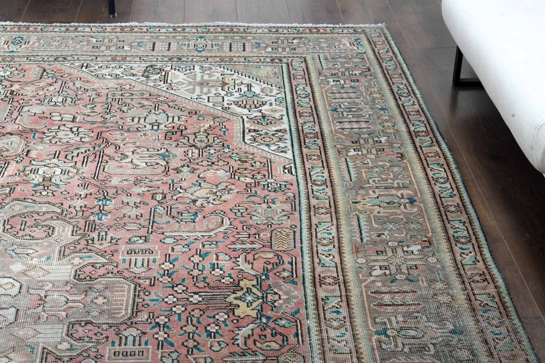 This one-of-a-kind vintage rug is hand-knotted and handwoven in Persian Region from a unique wool blend.