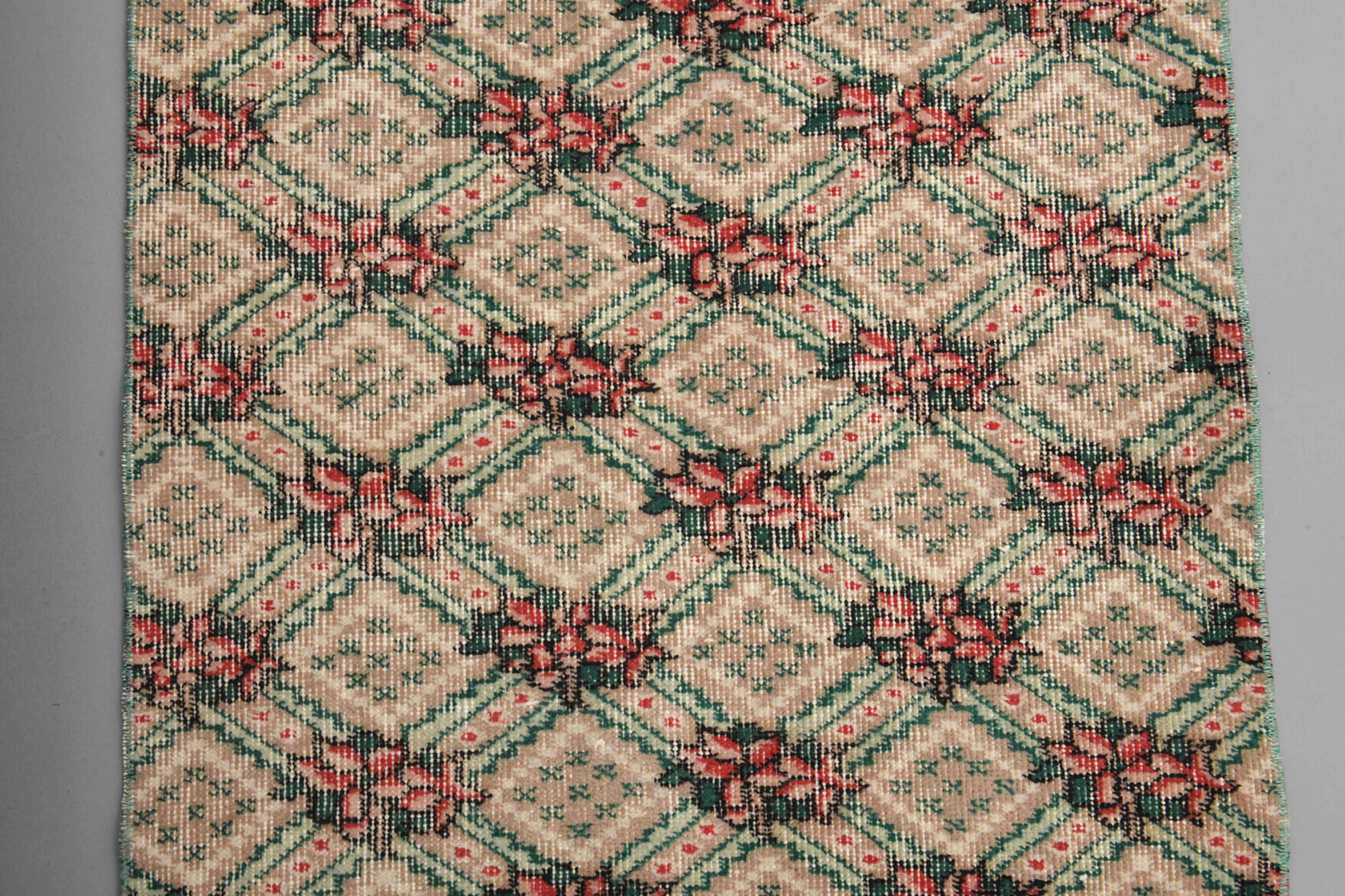 This one-of-a-kind vintage runner rug is hand-knotted and handwoven in Anatolia, Turkey from a unique wool blend.