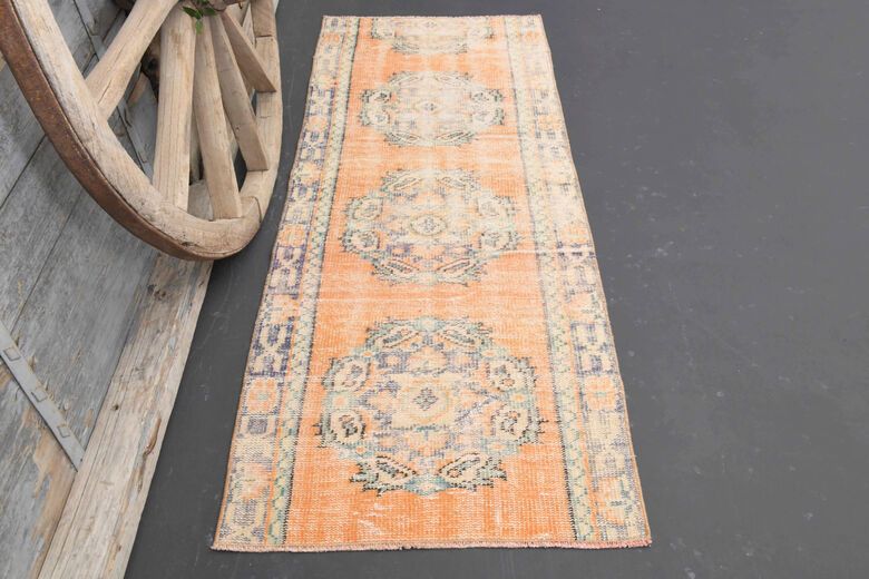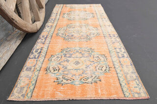 This one-of-a-kind vintage runner rug is hand-knotted and handwoven in Anatolia, Turkey from a unique wool blend.