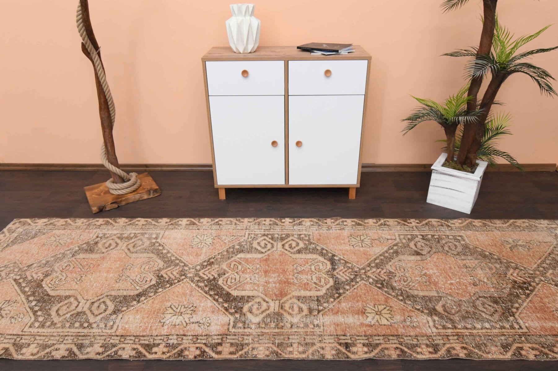 This one-of-a-kind vintage runner rug is hand-knotted and handwoven in Anatolia, Turkey from a unique wool blend.