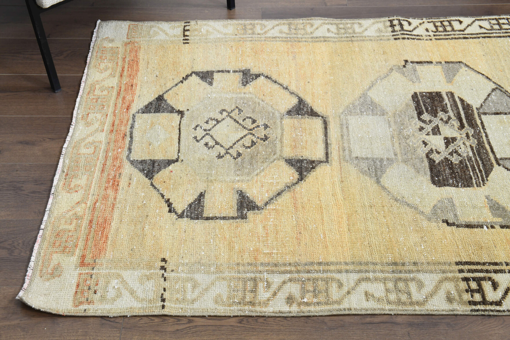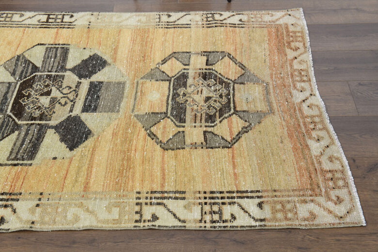 This one-of-a-kind vintage rug is hand-knotted and handwoven in Anatolia, Turkey from a unique wool blend.
