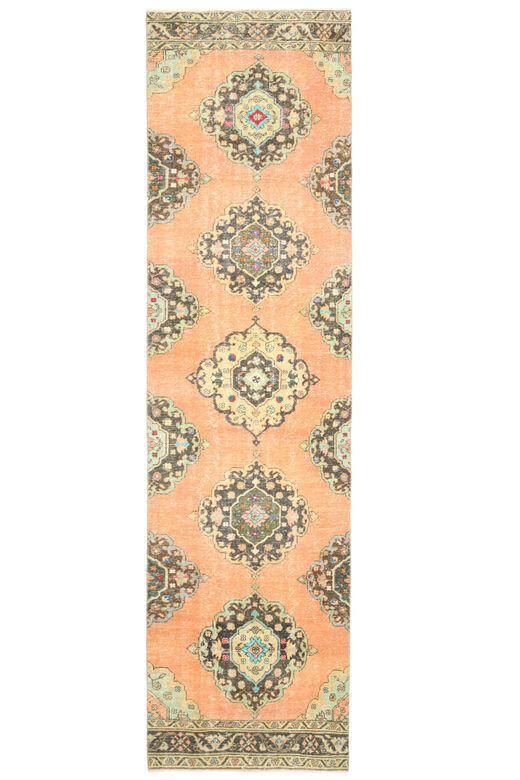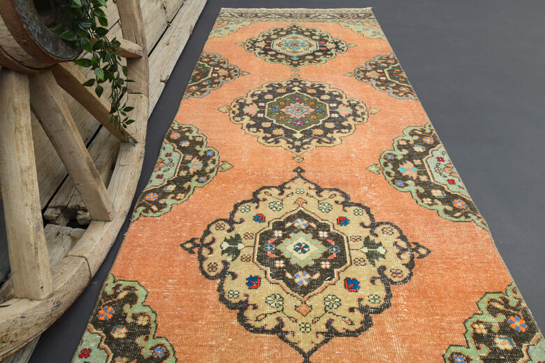 This one-of-a-kind vintage rug is hand-knotted and handwoven in Anatolia, Turkey from a unique wool blend.