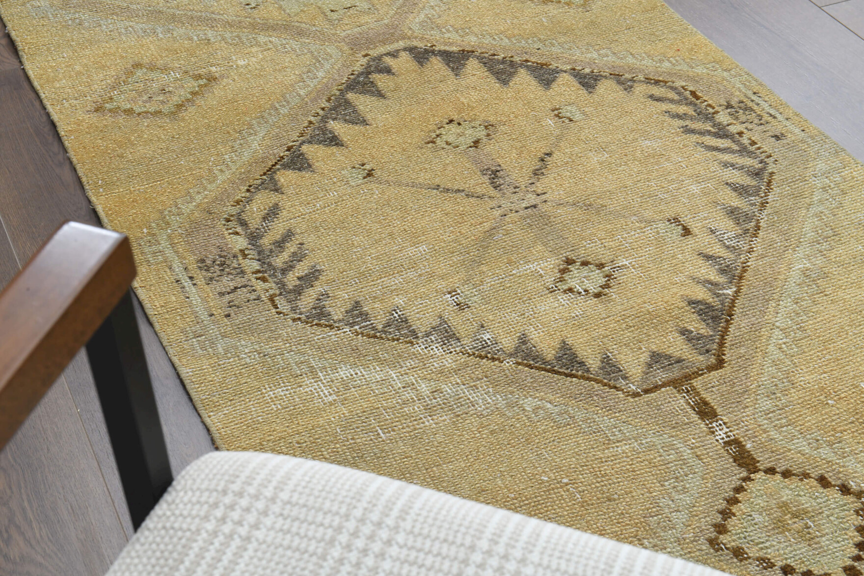 This one-of-a-kind vintage rug is hand-knotted and handwoven in Anatolia, Turkey from a unique wool blend.
