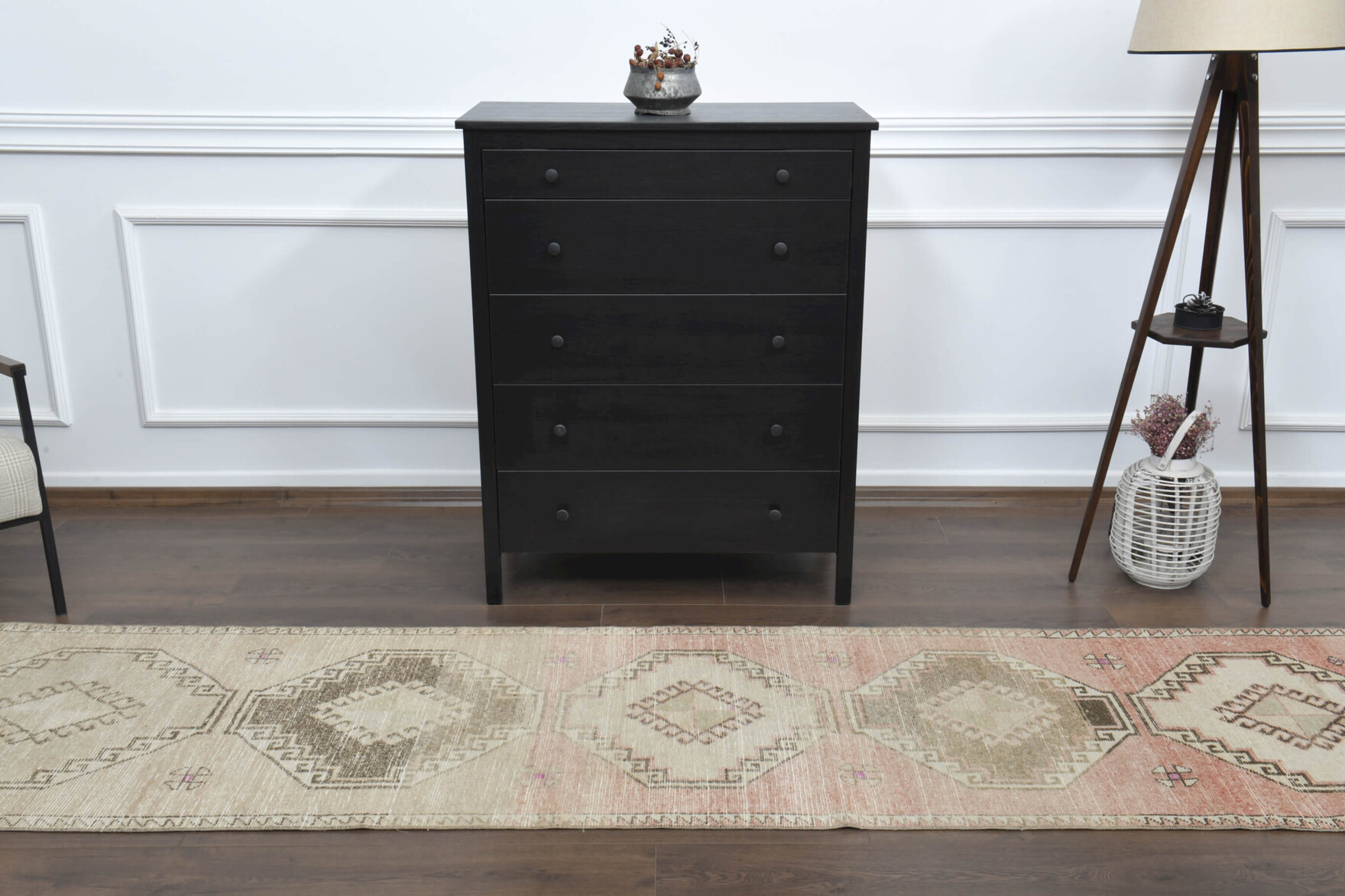 This one-of-a-kind vintage rug is hand-knotted and handwoven in Anatolia, Turkey from a unique wool blend.